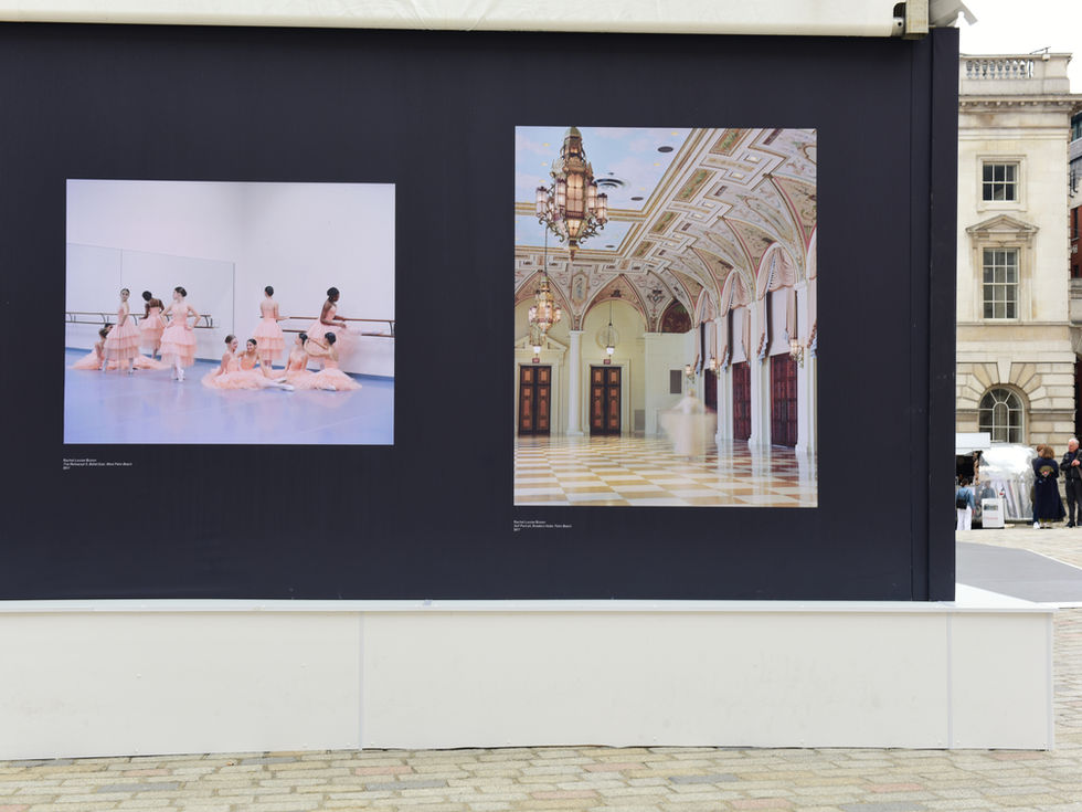 Extending across 40 metres of the east side of the pavilion structure, the commission formed part of Women in Photography that included Magnum photographer Susan Meiselas on the south side and Mary McCartney on the west. InSitu secured a partnership with Sea Containers London who sponsored both the commission and a satellite exhibition and first UK presentation of the original prints of Simulations, shipped from Palm Beach Photographic Centre, Florida. In addition, InSitu scheduled events to include evening and breakfast previews, 'in conversation' talks and exhibition tours as part of the Photo London VIP Programme.